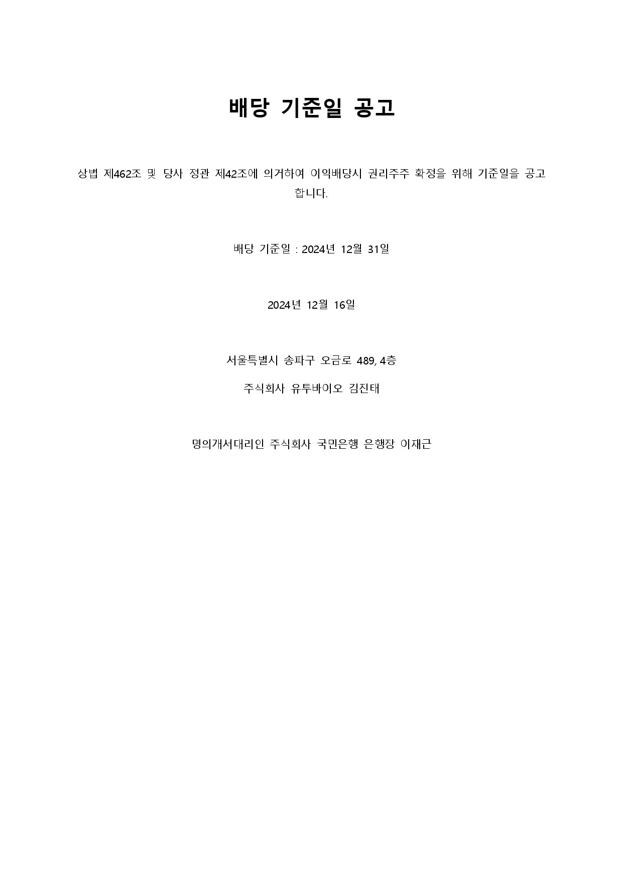 배당 기준일 공고