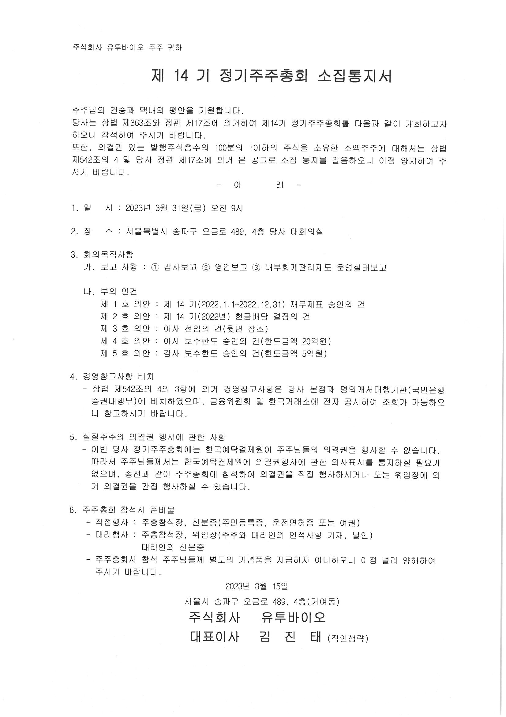 제14기 정기주주총회 소집공고